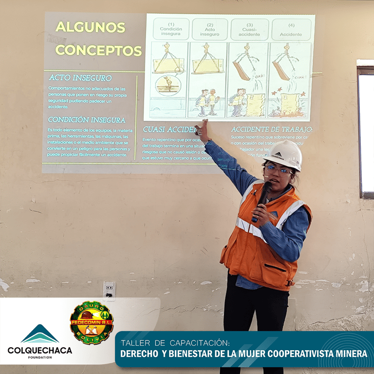 At the Colquechaca Foundation, we promote training programs specifically designed for mining cooperative members and associated women. Our goal is to strengthen soft, technical, and interpersonal skills, ensuring safer and more efficient work environments through workshops, practical courses, and personalized advisory services.